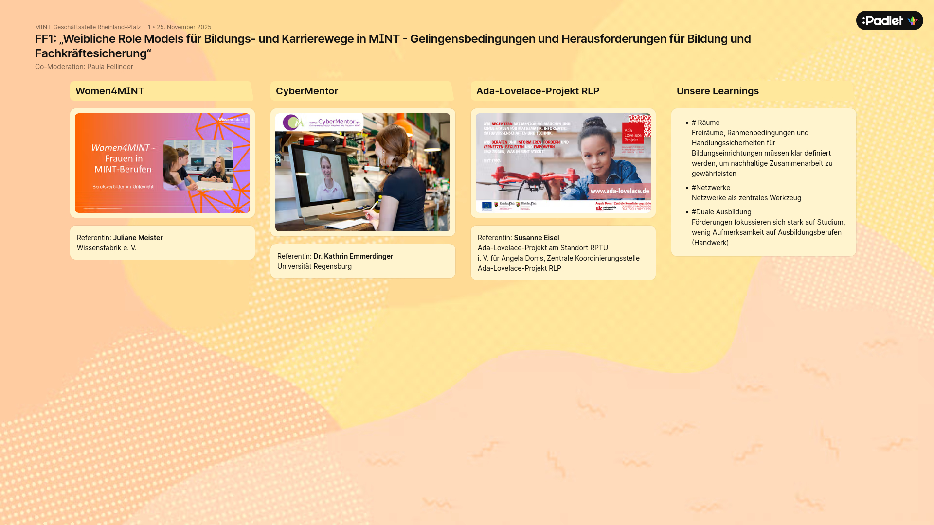 Fachforum 1: „Weibliche Role Models für Bildungs-und Karrierewege in MINT - Gelingensbedingungen und Herausforderungen für Bildung und Fachkräftesicherung“