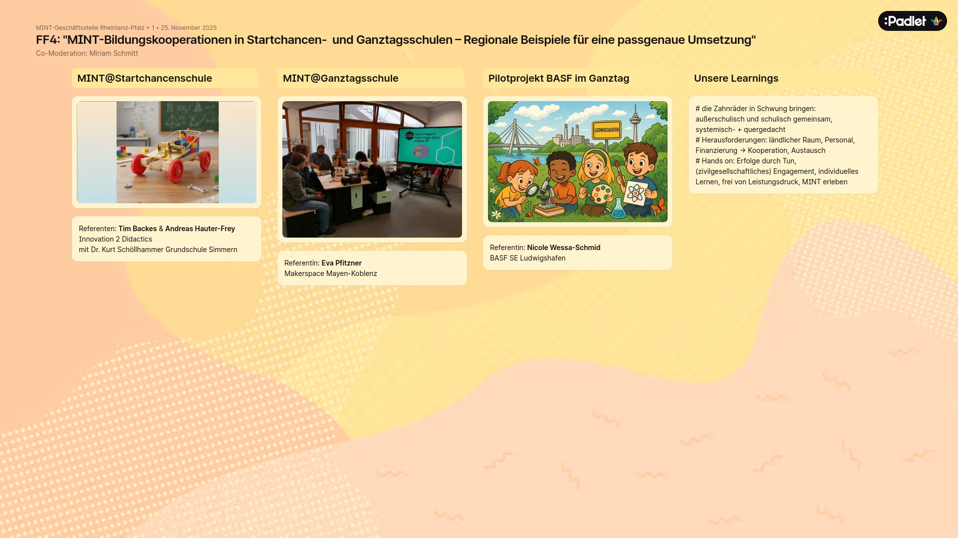 Fachforum 4: „MINT-Angebote für Startchancen Schulen in Rheinland-Pfalz – Kooperationspotentiale von Schulen mit außerschulischen MINT-Akteuren“